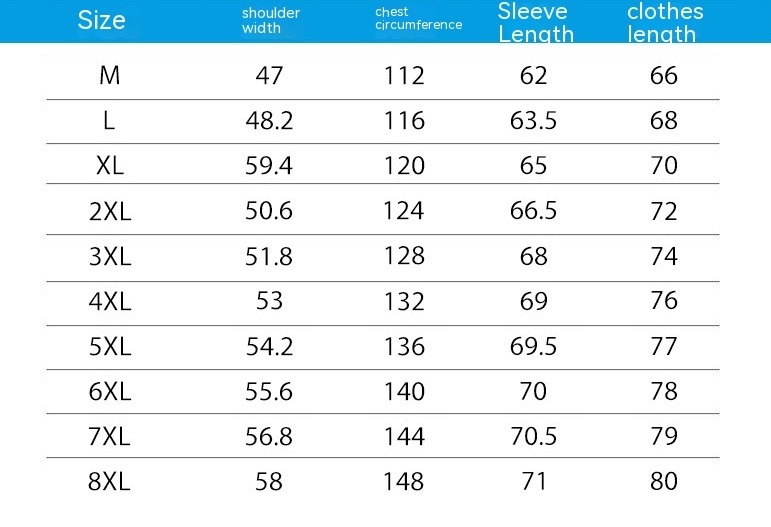 Size: M,L,XL,XXL,XXL,XXXXL,5XL,6XL,7XL,8XL