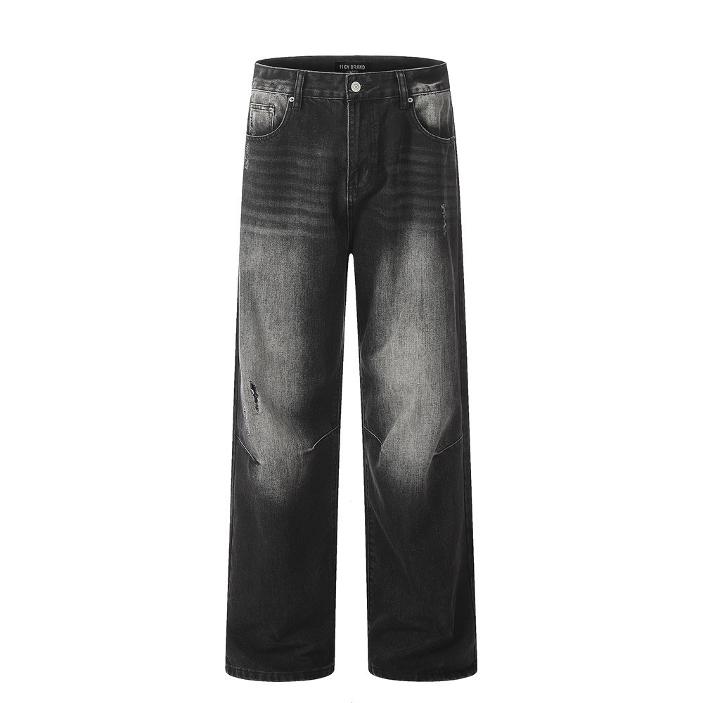 $25.00Retro Washed Ripped Jeans Loose Straight Casual Trousers