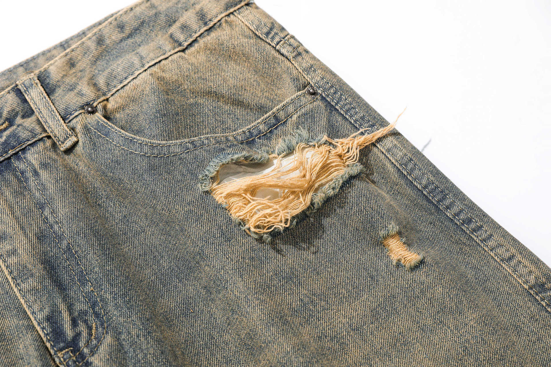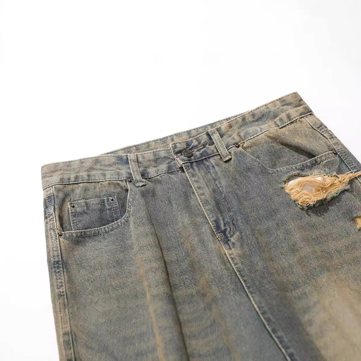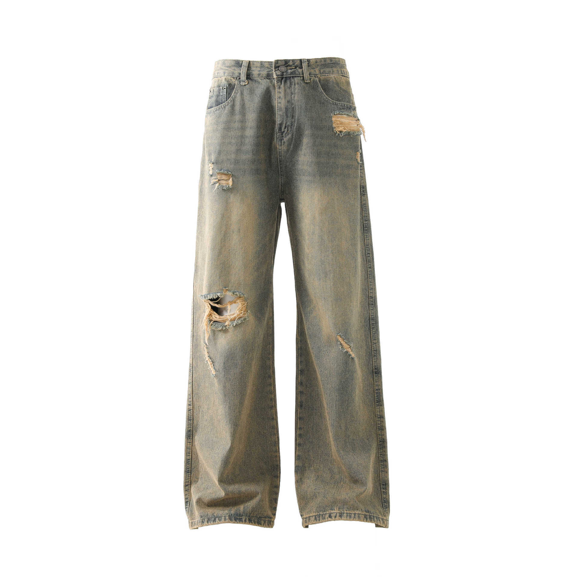 Retro Washed Ripped Jeans Loose Straight Casual Trousers